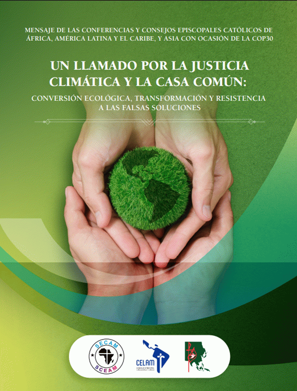 Un llamado por la justicia climática y la casa común : Conversión ecológica, transformación y resistencia a las falsas soluciones: resumen ejecutivo. Mensaje de las Conferencias y Consejos Episcopales Católicos de África, América Latina y El Caribe, y Asia con ocasión de la COP30