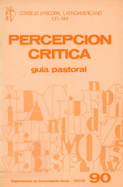 Percepción crítica. Guía pastoral Es un placer presentar esta guía, complemento del Manual de Iniciación para formar receptores críticos. Responde al objetivo del programa 147 del Plan Global 1983-1986 del CELAM: "Editar una guía popular latinoamericana para formar la conciencia crítica de los usuarios de medios". Más allá de lo didáctico, busca un sentido pastoral, presentado aquí separado del Manual por motivos metodológicos.