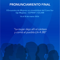 - Pronunciamiento final. I Encuentro de Mujeres en sinodalidad del Cono Sur Eje Mujeres – CEPRAP / CELAM -16 al 20 de marzo 2026- “La mujer dejo allí el cántaro y corrió al pueblo (Jn 4 28)”